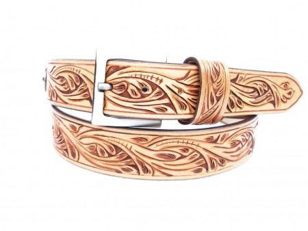 v.s. 0107 – Kožený opasek vyřezávaný, tepaný a zdobený – Cena 2 900 Kč