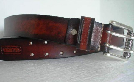 v.s. 0115 – Kožený opasek zdobený, šíře 40 mm. Přezka s dvojitým trnem – Cena 1 800 Kč