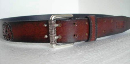 v.s. 0115 – Kožený opasek zdobený, šíře 40 mm. Přezka s dvojitým trnem – Cena 1 800 Kč
