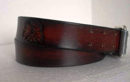 v.s. 0115 – Kožený opasek zdobený, šíře 40 mm. Přezka s dvojitým trnem – Cena 1 800 Kč