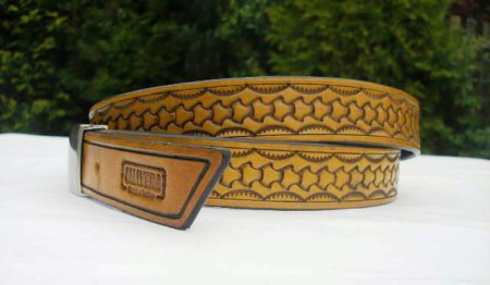 v.s. 0125 – Kožený opasek zdobený, šíře 35 mm – Cena 1 650 Kč