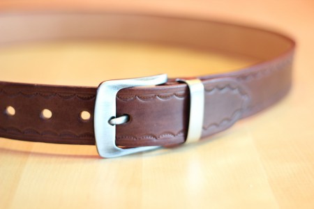 v.s. 0128 – Kožený opasek lehce zdobený. Šíře 40mm – Cena 1 600 Kč