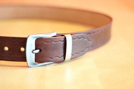 v.s. 0128 – Kožený opasek lehce zdobený. Šíře 40mm – Cena 1 600 Kč